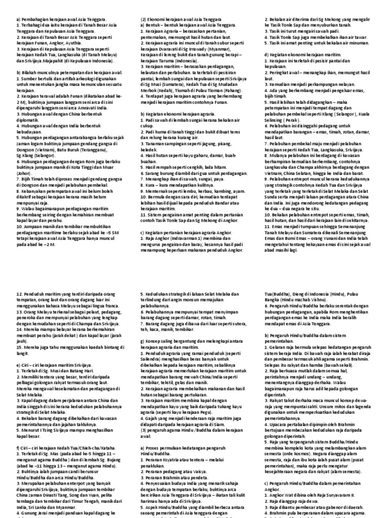 Nota Ringkas Sejarah Tingkatan 4 Bab 3 Kerajaan Awal Asia Tenggara Spm Pdf